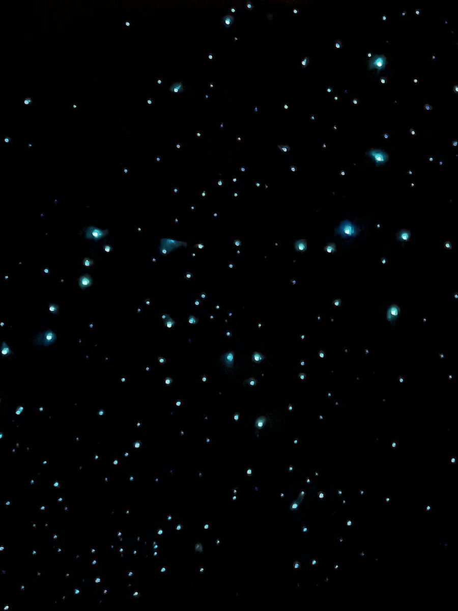 The first thing to note is that glow worms are the larvae of the fungus gnat and not actual worms! They hang from the roof of dark, damp caves, suspended in their cocoons, producing a soft greenish light to attract and ensnare smaller insects for food. It's an impressive sight to behold once your eyes have adapted to the darkness of the cave. For us, the highlight was gliding on a raft through the Mangawhitiakau cave system in pitch black with just the Milky-Way-like greenish glow of the glowworms lighting up our path!
